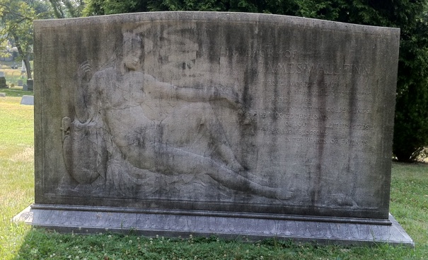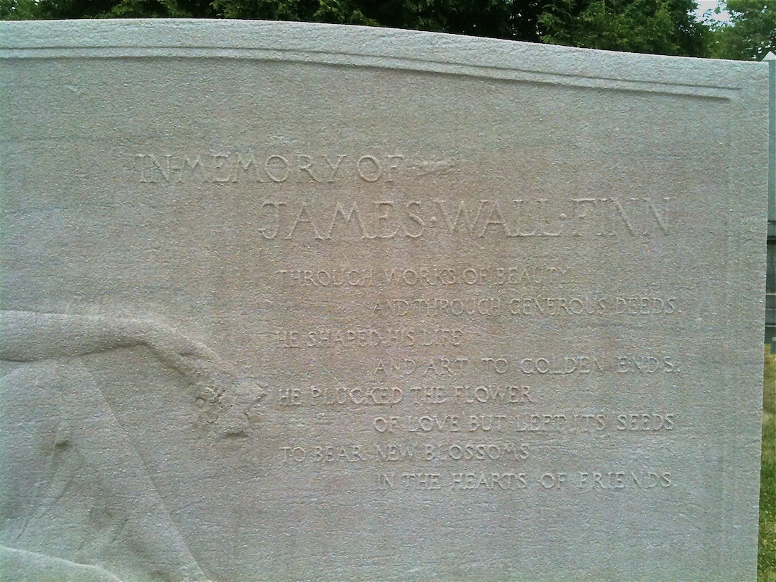 Just last week, Green-Wood’s president, Rich Moylan, was at a sculpture talk. There he happened to meet E. Adina Gordon, who just happens to be the author of the catalogue raisonne of Frederick MacMonnies’s sculpture. During the course of their conversation, she told Rich that we did indeed have a MacMonnies–the pink Tennessee granite monument to James Wall Finn, dating from 1916. That is very exciting news!