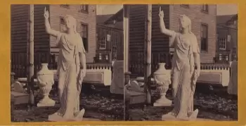 UPDATE: Just came across this. It is a stereoview, published by Edward and Henry T. Anthony at 501 Broadway. Here’s the image: obviously, some very finely carved marble. “Hope” is in the foreground. But also take a look at the urn on the ground–great carving!