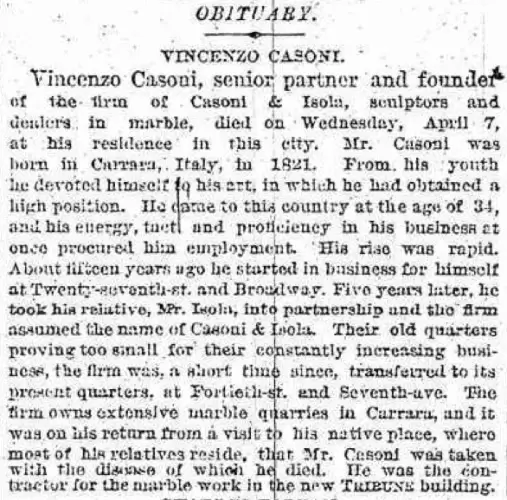 Further research revealed this April 10, 1875 obituary for Vincenzo Casoni in the New York Daily Tribune which gives some great details about his business: