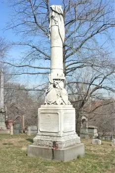 Susan reports that two other monuments at Woodlawn–those to Gail Borden (condensed milk) and Josiah Macy are also by Casoni & Isola. Her research also reveals that Casoni & Isola collaborated with Italian sculptor Giovanni Benzoni (1809-1873) on a Woodlawn monument–he did the sculpture and they did the base.