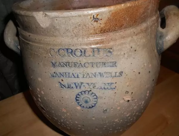 For more information about the Crolius family and their pots see https://chipstone.org/article.php/412/Ceramics-in-America-2008/New-York-City-Stonewares-from-the-African-Burial-Ground and various catalogs and videos from Crocker Farm https://www.crockerfarm.com/ especially https://www.crockerfarm.com/highlights/new-york-stoneware/