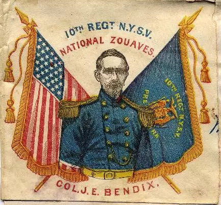 During the Civil War, Bendix enlisted as colonel at New York City on April 23, 1861, and was immediately commissioned into the Field and Staff of the 7th New York Infantry which he helped organize. On May 26, 1861, the regiment headed for Fortress Monroe onboard the steamer Empire City. On May 29, Bendix was ordered to join an expedition in command of Colonel Phelps. On June 9, Bendix was ordered to take command of detachments of the 1st Vermont and the 4th Massachusetts, in conjunction with a portion of his regiment. That force of 900 men were sent to Big Bethel. Writing from Newport News, Virginia, on June 12, 1861, he described the confusion of his soldiers in his field report describing the march to Big Bethel, Virginia. He wrote how his troops mistakenly engaged in “friendly fire” for about 15 minutes until they realized their error, and later, after being suddenly fired upon by the enemy, “….we were not strong enough to make an attack, and after firing some time, withdrew back into the woods.” After resigning on August 6 of that year, he was commissioned into the 10th New York as its colonel a month later on September 2. On October 24, 1861, he wrote from Fort Monroe requesting supplies: