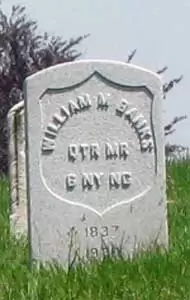 BALDWIN, WILLIAM M. (1832-1878). Captain, 84th New York (14th Brooklyn) Infantry, Company D. According to the 1850 census, Baldwin was a clerk. After enlisting as a second lieutenant at Brooklyn on April 18, 1861, he was commissioned into the 14th on May 23, promoted to first lieutenant on October 11, 1861, and to captain on October 1, 1862. Wounded at Laurel Hill, Virginia, on May 10, 1864, he returned to service and mustered out at New York City on June 6, 1864. On December 27, 1864, he applied for and received an invalid pension, certificate 38,373. He last resided at 240 9th Street in Brooklyn. Baldwin died from tuberculosis. Section 106, lot 234.