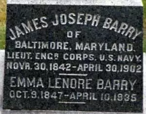 Baker received a pension from the Navy, certificate 40,169. He last lived at 699 Putnam Avenue in Brooklyn. He died from heart disease. In 1911, his widow applied for and received a pension from the Army, certificate 734,340. (The pension number for his widow was the same on the Army and Navy records.) Section 137, lot 29235.