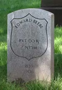 In 1880, the census recorded Beeston’s occupation as factory worker. According to the Brooklyn Directory for 1888-1890, he was employed as a machinist. In 1892, his application for an invalid pension was approved, certificate 865,548. The Brooklyn Directory for 1894-1896 reports that he was a machinist who lived at 404 Bushwick Avenue. He last lived at 94 North 3rd Street in Brooklyn. Beeston died from nephritis. Section 57, lot 4782.