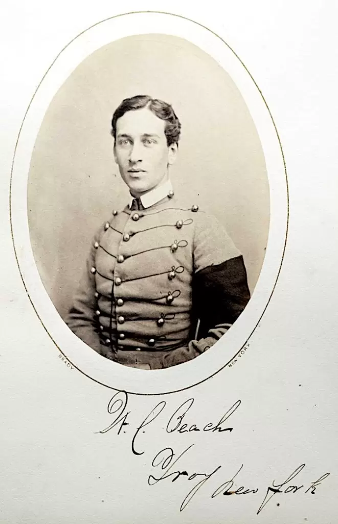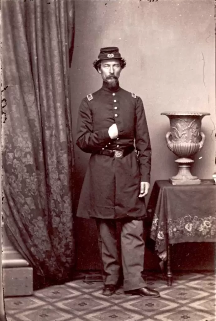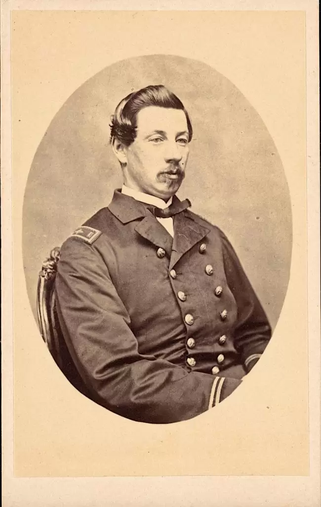 As per Historical Data Systems, on October 8, 1861, he, an architect, enlisted as a sergeant major in the 22nd Massachusetts Infantry, and mustered in that date. The next year, he was promoted to second lieutenant, then first lieutenant. On March 3, 1863, he was transferred to the United States Army Signal Corps as a second lieutenant.