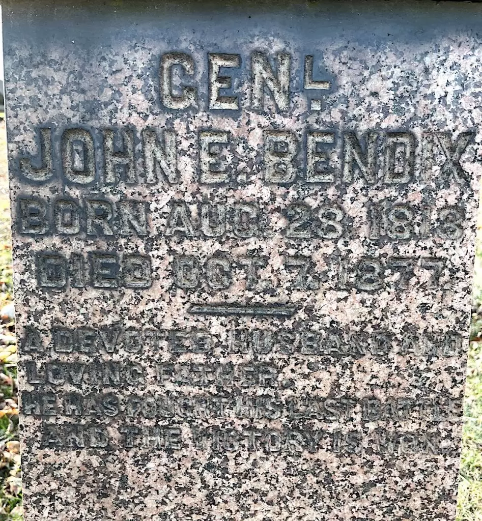 BENDIX, JOHN E. (1818-1877). Brigadier general by brevet; colonel, 7th New York Infantry; 10th New York Infantry. Born on the Sarah, a steamer that plied the St. Lawrence River between Canada and the United States, his parents returned to their native Germany where Bendix was educated. (Another document says Bendix was born in England.) He immigrated to the United States as a teenager, settled in New York and learned the trades of pattern-maker and machinist. He joined the 9th New York State Militia in 1847 and subsequently became a lieutenant colonel of the 11th New York State Militia in 1859.