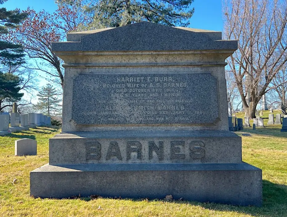 At the time of his death from pneumonia, Barnes resided at 114 Pierrepont Street in Brooklyn. As per his obituary in the Brooklyn Daily Eagle, his funeral took place at the First Presbyterian Church on Henry Street in Brooklyn; another notice of his death in that newspaper requested that comrades of the 13th Veterans Association attend his funeral. An additional article about Barnes’s funeral on the same page as the notices of death indicated that only officers would attend in uniform and that the funeral would be “unostentatious.” As such, there would be a full choir but no sermon or address and six uniformed sergeants from the 23rd Regiment would carry his casket. As per death notices in the New York Herald, members of the Lafayette Post of the Grand Army of the Republic, in which he was a past commander, and Sons of the Revolution in the State of New York, were invited to attend his funeral. According to his obituary in The New York Times, the veterans of the 13th and 23rd Regiments attended his funeral. Section 112, lot 20912.