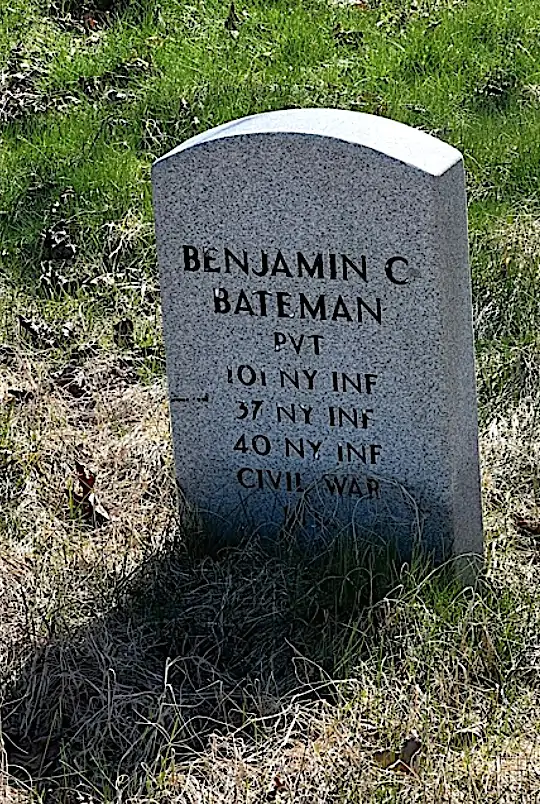 Bennett applied for and received an invalid pension in 1886, certificate 1,085,455. (His pension index card notes that his rank in the 145th was corporal, not sergeant as indicated on his soldier record and muster roll.) The 1910 census reports that he was a widower living at 251 Arlington Avenue in Brooklyn who worked as a carpenter and could read and write. Bennett last lived at 54 Lincoln Place in Brooklyn. His death was attributed to pneumonia. Section 101, lot 5941, grave 3.