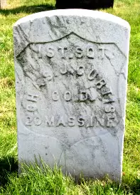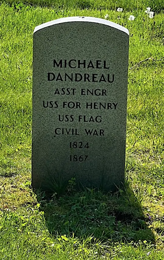 He served on the steamer Fort Henry, and was transferred to the Flag on May 6, 1862. The Flag patrolled the waters of the Carolinas and was engaged in battle in Charleston Harbor in April 1863. Dandreau was sent home because of sickness on May 14, 1863, declared unfit for duty and honorably discharged on June 3, 1863. He died of pulmonary disease on April 29, 1867. He was survived by his wife, Anna Golden Dandreau, and two sons. In 1892, his widow, Ann applied for a pension. Section 15, lot 8151.