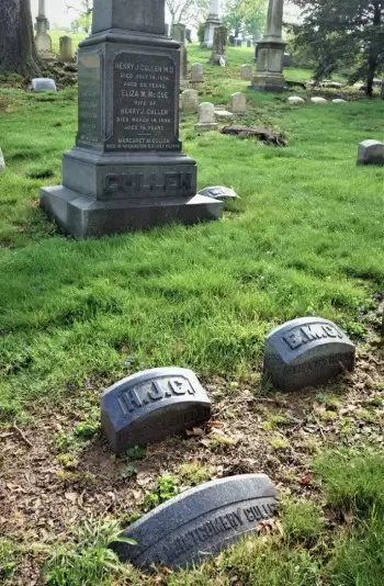 When the Brooklyn Daily Eagle reported his death on March 13, 1892, it noted that he had been a powerful financial figure. At the time of his death, Cullen was director of the People’s Trust Company, the Brooklyn Heights Railroad Company, and the New York and New Jersey Telephone Companies. The article in the Brooklyn Daily Eagle stated that he had previously been interested in gas and was a founder of the Metropolitan Company. His last address was 23 Pierrepont Street in Brooklyn. His death was officially attributed to blood poisoning. He was survived by his widow, Mary Baxter Cullen. His funeral took place at Grace Church in Brooklyn; among the pall bearers were David A. Boody, the mayor of Brooklyn, and Hugh McLaughlin, the aforementioned Democratic Party “boss.” The Times reported that his brother, Edgar, denied a motion to adjourn proceedings of the Supreme Court out of respect to Henry’s passing, noting that “the work of the court was too pressing to be delayed.” Section 185, lot 23699.
