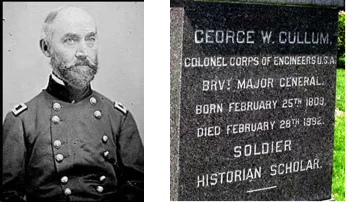 CULLUM, GEORGE WASHINGTON (1809-1892). Major general by brevet, and author. Cullum was born in New York City and grew up in Meadville, Pennsylvania, where he later designed the Independent Congregational Church which was built 1835-1836. After he graduated from the United States Military Academy in 1833 (3rd in his class of 43), he joined the engineer corps, and worked on harbor fortifications and government building projects throughout the country in the ensuing years. He rose to second lieutenant on April 20, 1836, and to captain on July 7, 1838. He also served as an instructor at West Point from 1848-1851 and was acting superintendent of the Academy in the summer of 1853 when Robert E. Lee, the superintendent, was on vacation. In 1849, his work, Description Of A System Of Military Bridges, With India-Rubber Pontons, was published; the work, used during the Mexican War, continued to be a standard for such bridges through the Civil War.