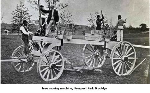 After the Civil War, he was the assistant engineer developing Prospect Park in Brooklyn, eventually becoming the chief engineer and superintendent upon Olmsted’s retirement. He was responsible for determining the public uses of the park, an unusual task at that time. While working at Prospect Park, Culyer designed a tree-moving machine that by 1870, had moved and/or imported more than 600 trees. In addition, he developed an extension ladder used for pruning trees, then a controversial procedure. Culyer later became chief engineer and head of Brooklyn’s Park Department and was closely associated with the design for many parks in Brooklyn. In addition, he designed the Flatbush Town Hall (photo below) in 1874, before Flatbush was integrated into the City of Brooklyn in 1894. The 1880-1882 and 1884-1886 Brooklyn Directories list him as the chief engineer and superintendent of parks at 12 City Hall; at that time, he lived on Douglass Street, near Vanderbilt Avenue in Brooklyn. His obituary in the Brooklyn Daily Eagle notes that he was involved in the engineering of the elevated Brighton Beach and Prospect Park Railroads and in the construction and development of Ocean Parkway and the Concourse at Coney Island, Brooklyn.