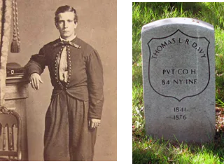 DAVY (or DAVEY), THOMAS L. R. (1841-1876). Private, 84th New York (14th Brooklyn) Infantry, Company H. A New Yorker by birth and a bookkeeper by occupation, Davy enlisted at Brooklyn on April 18, 1861, mustered in on May 23, and was discharged on September 3, 1863, at Washington, D.C. According to his muster roll, he was detailed as a clerk in the Adjutant General’s Office in April 1863.