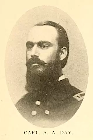 DAY, ALBERT A. (1840-1911). Major by brevet; captain, 20th Michigan Infantry, Companies B, D, and H. A Michigan native and resident of Ann Arbor, Day was a graduate of the University of Michigan. He enlisted at Ann Arbor as a private on August 15, 1862, and mustered into Company H of the 20th Michigan the next day. He quickly rose through the ranks becoming a corporal on an unspecified date; sergeant (January 15, 1863); second lieutenant of Company B (May 23, 1863); first lieutenant (May 12, 1864); and captain of Company H (September 10, 1864). On March 15, 1865, he was promoted to major by brevet and selected to command the regiment on that day. He mustered out on May 30, 1865, at Delaney House, Washington, D.C. According to his obituary in The New York Times, he was recorder of commissions for the Ninth Army Corps, judge advocate general of court-martial in Washington, D.C., and provost marshal in East Tennessee.