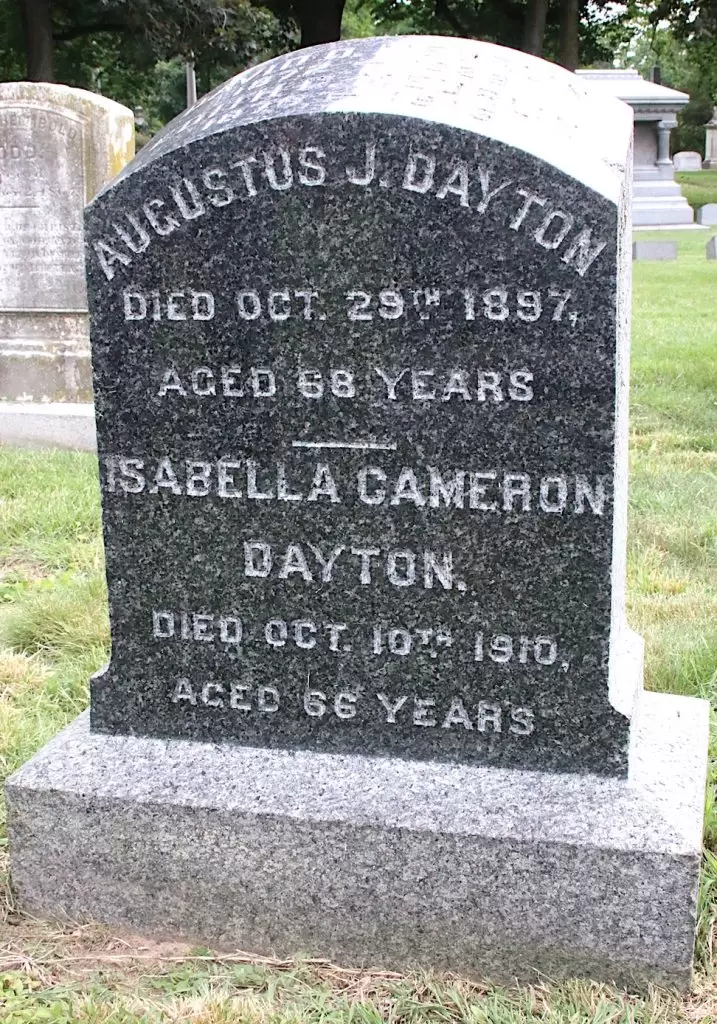 Active in civic and veterans’ affairs, he joined Ulysses S. Grant Post #327 of the G.A.R. on February 26, 1896, and was a member of the Society of Old Brooklynites, and the Volunteer Firemen’s Association. As per an online biography on findagrave website, Dayton was an avid fisherman who made his own tackle and rods. He is cited in an article in the Brooklyn Daily Eagle, “Some Crack Fisherman,” on September 15, 1894, as a worker in the Bureau of Streets in the Department of City Works who claimed to have caught a 22-pound striped bass off Coney Island pier in July 1894. He applied for an invalid pension days before his death citing disability due to catarrh of the stomach and intestines. He applied for and was granted an invalid pension. Dayton last lived at 421 Sixth Avenue in Brooklyn. His death was caused by anemia. Isabelle Dayton applied for and received a widow’s pension in 1897, certificate 1,200,320. Section 159, lot 15483.