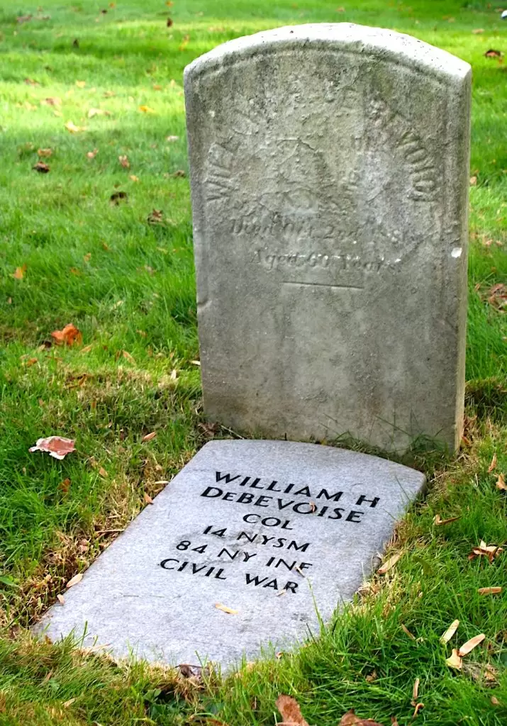 In civilian life, he was a member and worthy regent of the Royal Arcanum. He was the brother of George DeBevoise (see). As per his obituary in the Brooklyn Daily Eagle, members of the 14th Veterans were invited to his funeral. His last residence was at 450 Waverly Avenue in Brooklyn. Debevoise died of cerebral apoplexy. His wife, Mary, applied for and received a widow’s pension in 1887, certificate 254,349. Section 161, lot 15039.