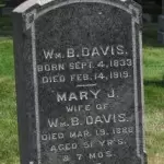 A carriage manufacturer by trade, he had a factory on Henry Street in Brooklyn for fifty years. The 1873-1876 and 1890-1892 Brooklyn Directories lists him as a carriage builder at 18 Henry Street; during those years, he lived at 84 Poplar Street. His last address was 84 Poplar Street in Brooklyn. Davis died of apoplexy. Section 138, lot 26048.