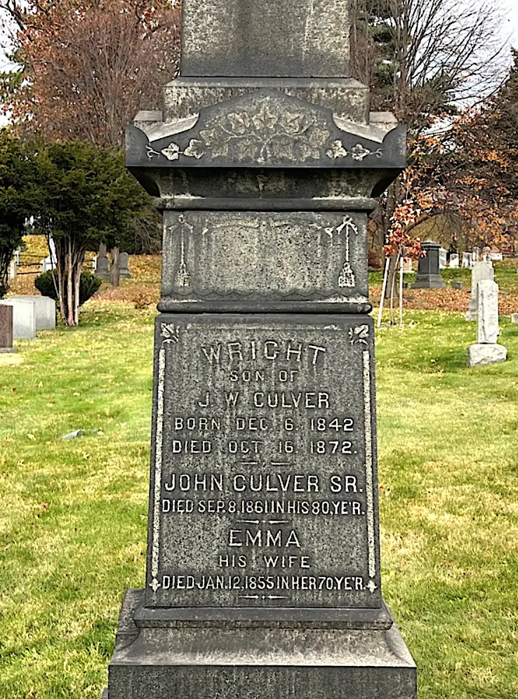 According to the 1870 census records, he was employed as a policeman and living with his parents. That same census shows his father, John Culver, was a shipbuilder whose real estate was valued at $12,000, and whose personal worth was $1,200. Among John Culver’s associates was John Jacob Astor. His last residence was 145 South Portland Avenue, Brooklyn. He died of consumption. Section 106, lot 10181.