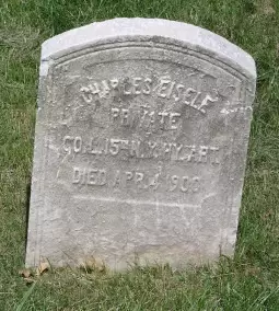 EISELE, CHARLES (1842-1900). Private, 15th New York Heavy Artillery, Companies K and L. A native of Germany, he enlisted and mustered into Company K of the 15th Heavy Artillery on September 28, 1863, at New York City. At some point, he transferred to Company L before he mustered out on August 22, 1865, at Washington, D.C. In 1891, his application for an invalid pension was approved, certificate 921,143. He last lived at 559 Driggs Avenue in Brooklyn. He died of Bright’s disease. Elizabeth Eisele applied for and received a widow’s pension in 1900, certificate 505,015. Section 136, lot 28307, grave 79.