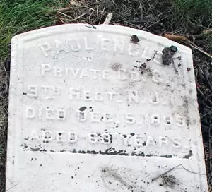 FARRELL, FRANK (1838-1879). Private, 174th New York Infantry, Company B. After Farrell enlisted at New York City as a private on September 30, 1862, he mustered into the 174th New York on October 17, and mustered out on an unknown date. He last lived in New York City. Section 181, lot 15645.