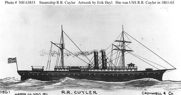 First launched in 1857, the Harriet Lane saw action in the Navy during the Civil War (after being transferred from the Revenue Marines on March 30, 1861) at many battles including: Fort Sumter, South Carolina; Hampton Roads, Virginia; New Orleans, Louisiana; and Galveston, Texas. After Fort Sumter, Faunce was captain of the cutter when she was at Newport News, Virginia, and then sent to Hatteras Inlet where it ran aground on August 29, 1861. When Fort Hatteras, North Carolina, surrendered, the flag was lowered aboard the Harriet Lane. Much of her provisions and armament had to be destroyed to lighten her load before she rejoined the squadron at Hampton Roads, Virginia, on September 8. He was later assigned to shore duty and was not the captain of the cutter in 1862 when it was in Key West, Florida, and then in the Gulf. In 1863, the ship was captured by the Confederates in Galveston and after being retaken, was declared unfit for duty.