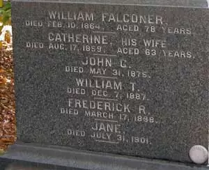 FALCONER, JOHN A. (1815-1872). Captain, 79th New York Infantry, Companies D and A. Of Scottish birth, he enlisted at New York City and mustered into the 79th on May 15, 1861, with the rank of second lieutenant. He rose through the ranks to first lieutenant, became a captain on August 1, 1861, was transferred to Company A on October 9, 1861, and was discharged for disability on March 1, 1862. He last resided on West St. Paul’s Avenue in Jersey City, New Jersey. The cause of his death was dropsy (edema). Section 186, lot 18818.