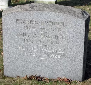 According to the censuses of 1880 and 1900, he was a stockbroker. As per an article about his death, he was associated with the firm of Charles E. Edey & Son at 2 Wall Street in Manhattan. Edey, who was separated from his wife and family, was a boarder at 121 Lincoln Place in Brooklyn at the time of his death. A November 20, 1900, article in the New York Daily Tribune indicated that his sudden death was due to natural causes, possibly apoplexy. However, his death was shrouded in controversy. The Evening Telegram of November 20 reported that Edey’s waistcoat was buttoned, covering up the bullet hole that was discovered by the undertaker. In addition, a small rifle was standing in a corner of the room at the boarding house. No one in the house heard a gunshot and the waistcoat bore no bullet hole. A subsequent article in the Brooklyn Daily Eagle on November 21, 1900, noted that Edey carried a poem and news-clipping about suicide in the pocket of his clothing and confirmed that his death was attributed to a rifle shot to his heart. Section 94, lot 359.