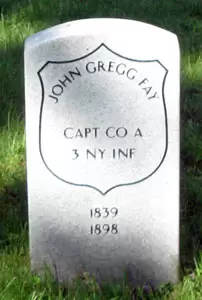 FAY, JOHN GREGG (1839-1898). Captain, 3rd New York Infantry, Company A. Born in Westchester, New York, he was a descendant of Lord Pell of Pelham Manor, the holder of the Long Reach Patent, which he transferred to the Huguenots, giving them possession of New Rochelle, New York, in the early part of the eighteenth century. Fay enlisted on April 17, 1861, at Albany, New York, as a first lieutenant, was commissioned into the 3rd New York on May 14, and was promoted to captain on July 2 of that year. As a captain, he commanded the 3rd New York at the siege and defense of Suffolk, Virginia, from April 11 to May 4, 1863. He was dismissed from the service on May 24, 1864, but that dismissal was reversed and he was honorably discharged.
