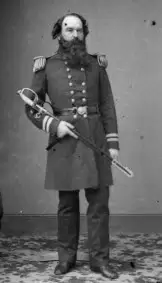 FARNUM, JOHN EGBERT (1824-1870). Brigadier general by brevet; colonel, 70th New York Infantry; 11th Regiment, Veteran Reserve Corps. Born in New Jersey and educated in Pottsville, Pennsylvania, he enlisted in the Army as a member of the 1st Pennsylvania Infantry in 1846, and served through the Mexican War including the landing at Vera Cruz and the surrender of Mexico City. A lover of adventure, he took on the dangerous job of carrying mail from California to Vera Cruz, suffered from cholera while he was in Nicaragua, and then came to New York where he agreed to be a guest aboard a yacht traveling to southern ports. Later, he was indicted in Savannah, Georgia, for carrying on the slave trade as the captain of the Wanderer. He is said to have regretted this action for the rest of his life, and when the Civil War began, he became major of the 70th New York under General Daniel Sickles. Farnum soon distinguished himself in battle and was promoted to colonel. On May 5, 1862, at the Battle of Williamsburg, Virginia, he was severely wounded with wounds to both thighs, but recovered in time to fight bravely at Fredericksburg and Chancellorsville, Virginia, and at Gettysburg, Pennsylvania. For his gallant conduct in those engagements, he was brevetted brigadier general on January 3, 1866. However, his wounds forced him to leave active service, and he served out the War as colonel of the 11th Regiment of the Veteran Reserve Corps.