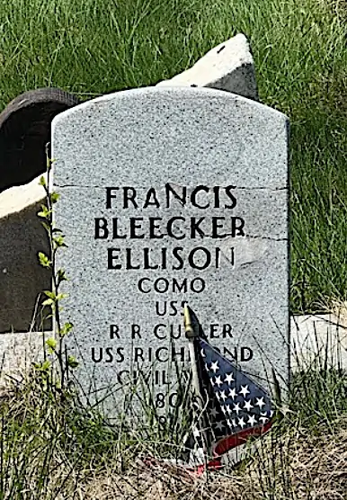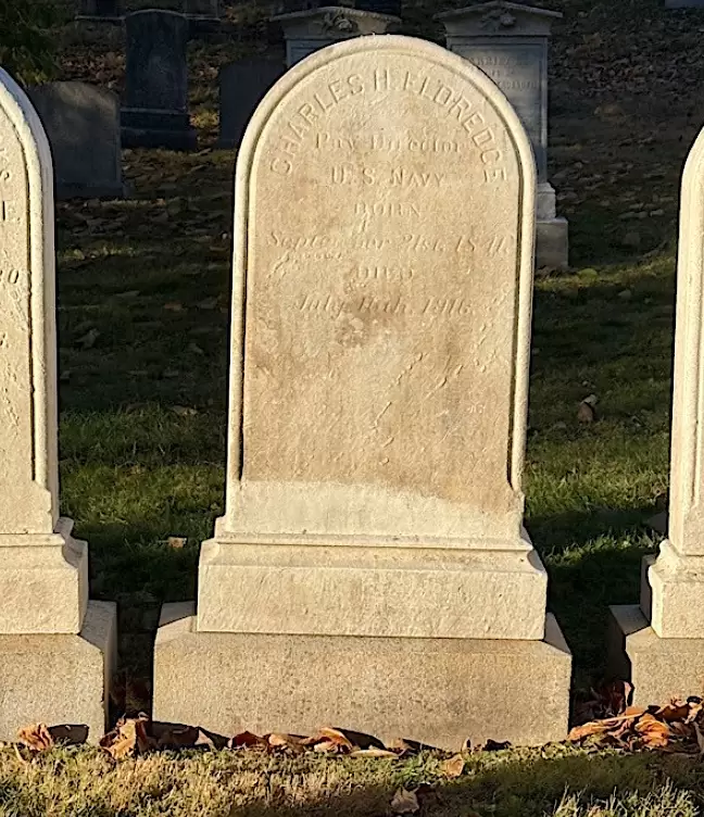 After the War, Eden lived in Brooklyn, New York City, Connecticut and New Jersey, eventually settling permanently in Brooklyn around 1890. He founded and ran the Eden Specialty Company, 4314 Third Avenue, Brooklyn, which manufactured carpenters’ levels and squares. A member of Ulysses S. Grant Post # 327, G.A.R., there is a marker from the organization on his grave. In 1890, he applied for and received a disability pension, Navy certificate 11,466. His last residence was 419 37th Street, Brooklyn. After his death due to a cardiac condition in 1925, Lillian Eden applied for and was awarded a widow’s pension, certificate, 11,466. Section 154, lot 27249.