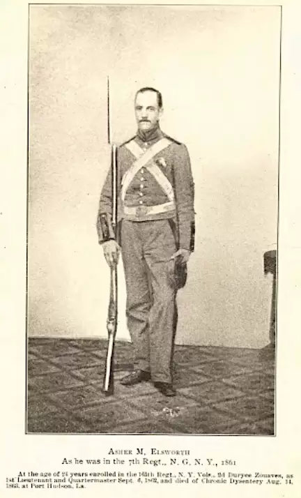 ELLIOTT, CHARLES B. (1831-1896). Captain, 73rd New York Infantry, Company I. A native of New York City, Elliott was appointed assessor in 1858. He was also an assistant engineer with the Brooklyn Volunteer Fire Department. During the Civil War, he enlisted as a captain at New York City on May 3, 1861, and was commissioned into the 73rd New York three months later on August 2. That regiment, originally known as the Second Fire Zoaves, consisted mostly of firemen and their runners. His commanding officer, William R. Brewster (see), cited him in his field report from Williamsburg, Virginia, on May 7, 1862, for assisting him during the battle there two days earlier, “… in urging forward the men when exposed to a galling fire and obliged to advance through a thick entanglement of brush and felled timber.” Elliott was discharged on April 10, 1862.