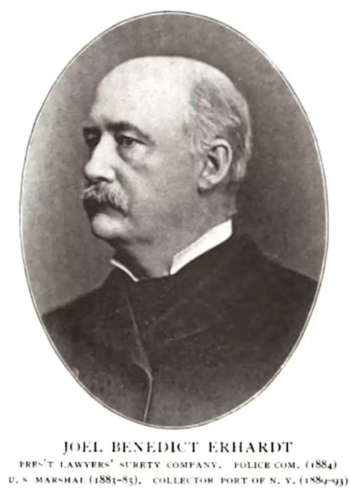 EBLING, JOSEPH E. (1818-1868). Quartermaster, 164th New York Infantry. A native of Pennsylvania, he was a confectioner as per the New York City Directory of 1839-1840 and the census of 1850. Originally on Houston Street, his confection shop was located at 200 Bowery in the 1840s and 1850s. Subsequently, Ebling was the commissioner of streets and lamps as per an article in the New York Herald on January 28, 1856, which reported that a jury was unable to come to a verdict in a case that accused him and other municipal officers of bribery related to the purchase of street sweeping machines. He was acquitted after a second trial. Another article in the New York Evening Express on March 6, 1857, noted that he was charged with the responsibility of receiving proposals for lighting street lamps with gas and furnishing and laying the needed supply-pipes for those lamps for blocks above 79th Street in New York City. On June 4, 1857, the New York Herald reported that Ebling was elected commodore of the Harlem Model Yacht Club. The census of 1860 noted that his occupation was “gentleman” and that he owned real estate valued at $15,000 and had a personal worth of $5,000. On July 7, 1861, his son, Eugene W. Ebling, a corporal in Company A of the 11th New York Infantry was shot in the forehead and instantly killed at the Battle of First Bull Run, Virginia.