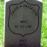On October 22, 1866, Elliott became a naturalized citizen. His naturalization papers, the censuses of 1870 and 1880 and the Brooklyn Directory for 1876 all list his occupation as lithographer. In 1882, he applied for and received an invalid pension, certificate 483,332. He last lived at 307a 16th Street in Brooklyn. The cause of his death was edema of the lungs (excess fluid in the lungs). Charlotte Elliott, who is interred with him, applied for and received a widow’s pension in 1890, certificate 354,353. Section 6, lot 20118, grave 528.