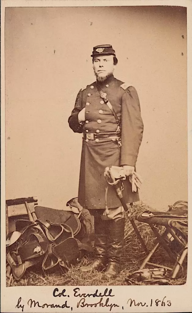 EDDY, ADFUR (1827-1907). Unknown soldier history. Eddy, who was born in Rhode Island to a prominent family, served in a Rhode Island regiment during the Civil War according to an obituary in the Brooklyn Standard. Further details related to his military service are unknown although it appears that his regiment did not do federal service during the Civil War. According to an article in The New York Times, published on September 4, 1864, Eddy, a resident of 125 Front Street in Manhattan, paid for a substitute for the draft.