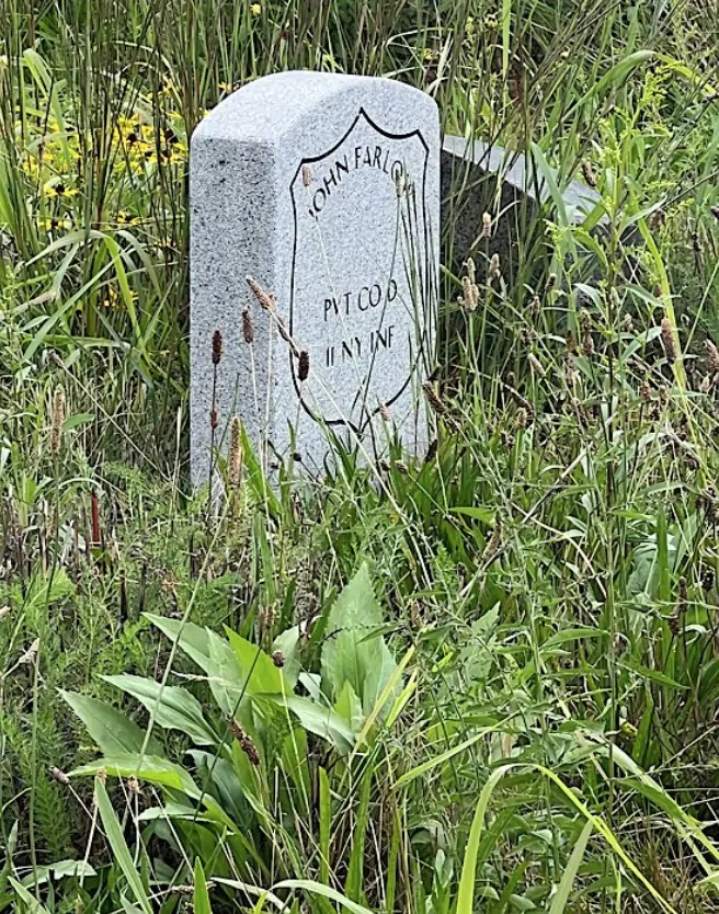 On March 11, 1862, he applied for and was granted an invalid pension under certificate 9,781. According to the censuses of 1870 and 1880, he was a fireman. The Veterans Schedule of 1890 confirms his military service and discharge by a doctor’s certificate. After retiring as a New York City fireman, he last resided in Centerport, New York. Shortly after his death due to stomach cancer, Emily Farlow applied for and was granted a widow’s pension, certificate 496,389. Section 85, lot 17700, grave 51.