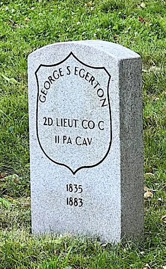 EGERTON, GEORGE STEARNS (1835-1883). Second lieutenant, 11th Pennsylvania Cavalry, Company C. Originally from Vermont, Egerton was employed as a clerk in Troy, New York, according to the 1850 census. The 1857 New York City Directory lists him as an accountant but he returned to Troy where the 1860 census indicates that he was a bookkeeper. After enlisting at Philadelphia, Pennsylvania, and mustering in as a first sergeant on August 17, 1864, he was promoted to sergeant on November 3, 1864, to first sergeant on March 1, 1865, and to second lieutenant on August 8, 1865, but did not muster in at that rank. On August 13, 1865, he mustered out at Manchester, Virginia.