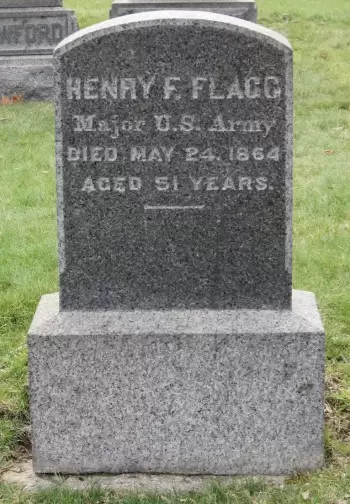 FLAGG, HENRY F. (1813-1864). Major and additional paymaster, United States Volunteers Paymaster’s Department. Massachusetts-born, Flagg enlisted as a major on November 26, 1862, was immediately commissioned into the United States Volunteers Paymaster’s Department with a promotion to major and additional paymaster on that day, and died of disease on May 23, 1864. Section 106, lot 8112.