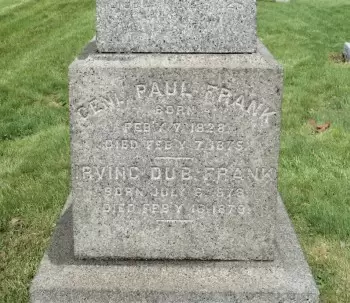 Frank was a fire and marine insurance broker who headed the firm Frank & DuBois in Manhattan. In addition, he was a founder of the Brooklyn Riding and Driving Club and served on its Board of Directors. His last residence was at 21 Montgomery Place in Brooklyn. He succumbed to diabetes mellitus. Section 162, lot 15587.