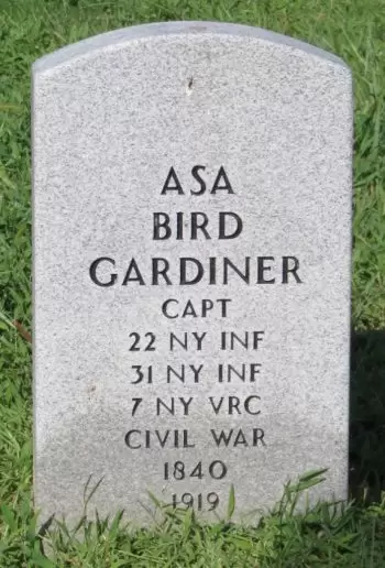 GARDINER (or GARDNER), ASA BIRD (1840-1919). Captain by brevet; captain, 22nd Regiment, New York State National Guard, Company I; first lieutenant, 31st New York Infantry, Company H; 7th Veteran Reserve Corps. A native New Yorker, he was born “Asa Bird Gardner” in Fraunces Tavern where his father kept bar. He graduated from the College of the City of New York in 1859 and New York University School of Law in 1860, practicing briefly before the Civil War.