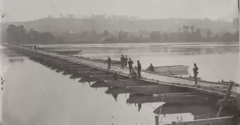 As per Heberton, Hodge was recommended for the Balloon Corps by his superiors because of his artistic ability and photography skills, making him capable of making maps of the surrounding terrain and enemy positions, an important function of the corps. Maps created through aerial surveillance were distributed to staff officers and commanders as troops approached Richmond and near Yorktown, on the Chickahominy River. Heberton postulates that through Hodge’s map-making aptitude, he came in contact with assistants of the renowned Civil War photographer, Matthew Brady. Heberton also connects a photo of Hodge owned by his great-great granddaughter showing Hodge with deep-set eyes, bushy brows, a cleft chin, long thin nose and small ears covered with poufy hair, to a musket-toting assistant accompanying Brady’s assistants in Manassas, Virginia, in March 1862, the same time the 14th was in the area. Hodge was on the muster rolls of the Balloon Corps in April, May and June of 1863, when he was stationed in Washington, D.C. He returned to the 14th Brooklyn in the summer of 1863.