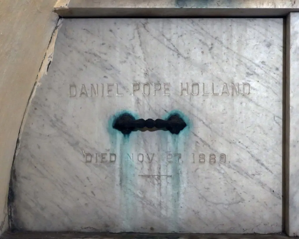 After the Civil War, Holland lived in New York and Washington, D.C., where he was a prominent attorney in high-profile cases, defending Major John Gee for war crimes committed in North Carolina’s Salisbury Prison and participating in the impeachment trial of Florida’s Governor Harrison Reed. His last residence was 20 West 15th Street in Manhattan. His death was caused by a heart attack. Holland’s remains were moved from the receiving tomb to the Catacombs in 1908. Vault #12, Catacombs.