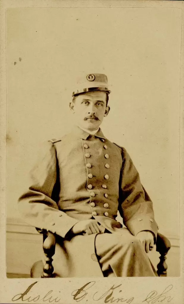 KING, LESLIE G. (or R.) (1841-1919). Second assistant engineer, Confederate States of America Navy; private, 9th Virginia Infantry, Company K, Confederate States of America. Born in Virginia, King resided in Portsmouth, Virginia, and was employed as an engineer’s apprentice at the start of the Civil War. As per military records in the National Archives, he enlisted in the 9th Virginia Infantry on April 20, 1861, at Portsmouth, Virginia, and mustered into service 10 days later. On June 30, 1861, he was mustered into Confederate Navy service. However, his name appeared on the regimental returns of the 9th Virginia Infantry, Company K, for December-February, 1862. On April 26, 1862, by special order of the Confederate Secretary of War, he was transferred to Captain James Mulligan’s signal corps unit.