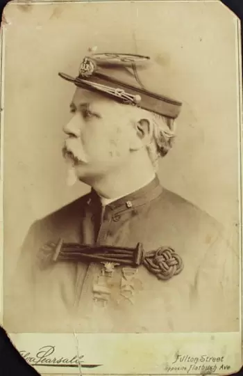 After the war, he was a colonel in the 7th Regiment’s Field and Staff where he was brevetted to brigadier general on January 20, 1908, by Governor Hughes in recognition of 50 years of service with the regiment. On November 24, 1884, he was appointed chief clerk of the New York City Police Department and remained on duty until his death from apoplexy in 1918. He was the brother-in-law of Stephen Burdett Hyatt (see). His last residence was 20 West 121st Street in Manhattan. Section 182, lot 9458.