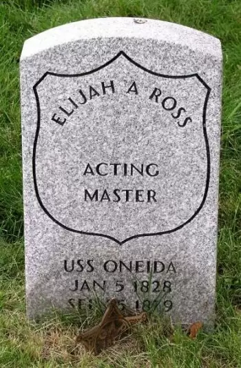 ROSS, ELIJAH A. (1828-1879). Acting master, United States Navy. Born in North Yarmouth, Maine, Ross was registered as a member of the American Ship Masters’ Association on December 4, 1861, and served as acting master in the Navy aboard the USS Oneida from the following December 28 until August 1864. During that period, the Oneida was assigned to the West Gulf Blockading Squadron, under the command of Admiral David Farragut, during the blockade of Mobile Bay, Alabama, and New Orleans, Louisiana. In a significant Union victory, the Oneida, commanded by Captain Samuel Phillips Lee, along with three other Union ships, pursued and defeated Confederate gunboats in April 1862 on the Mississippi River near New Orleans. The only blemish on the day was severe damage to the Oneida during the engagement. On October 9, 1862, Ross provided testimony at a court inquiry into the conduct of the Oneida’s then commander, George Henry Preble, for failing to prevent the Confederate steamer Oreto from running the blockade of the harbor of Mobile. The inquiry resulted in Preble’s dismissal, which was later reversed by President Lincoln. Ross tendered his resignation from the Navy on August 11, 1864, due to heart problems and rheumatism, and it was accepted by Gideon Welles, Secretary of the Navy.