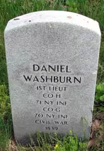 WASHBURN, DANIEL (1839-1891). First lieutenant, 70th New York Infantry, Company G; private, 71st Regiment, New York State Militia, Company H; paymaster’s steward, United States Navy. A Brooklyn native, Washburn enlisted there as a first lieutenant on June 27, 1861, mustered into Company G of the 70th New York, known as the 1st Excelsior, and resigned at Washington, D.C., on August 8. He re-enlisted at New York City as a private on May 28, 1862, mustered into the 71st New York State Militia, and mustered out after three months at New York City on September 2.