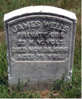 WALTER (or WALTERS), WILHELM (1837-1892). Private, 72nd New York Infantry, Company A. A native of Germany, he enlisted at New York City as a private on May 27, 1861. On June 21, he mustered into Company A of the 72nd New York from which he was discharged for disability on January 5, 1863, at Point Lookout, Maryland. He last lived on Willett Street in Brooklyn. Section 115, lot 21201.