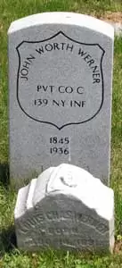 Wares was a plumber by trade. In 1902, his application for an invalid pension was approved, certificate 1,045,681. Wares died of nephritis. His wife applied for and was granted a widow’s pension, certificate 583,272. A great granddaughter of Wares married the grandson of Edwin Forrest Van Wart (see). He last lived at 879 Home Street in New York City. Section 13, lot 19694, grave 365.