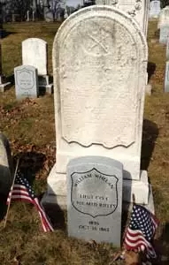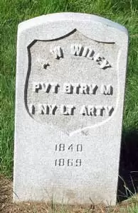 WILLIAMS, WILLIAM (1840-1880). Private, 4th New York Light Artillery; 5th New York Light Artillery. Born in Norway, he enlisted as a private at New York City on October 8, 1861, the same date that he mustered into the 4th New York Light Artillery. He transferred into the 5th Light Artillery on December 12, 1863, from which he was discharged. His last address was 53 East 112th Street in Manhattan. Section 190, lot 23160.