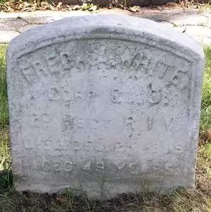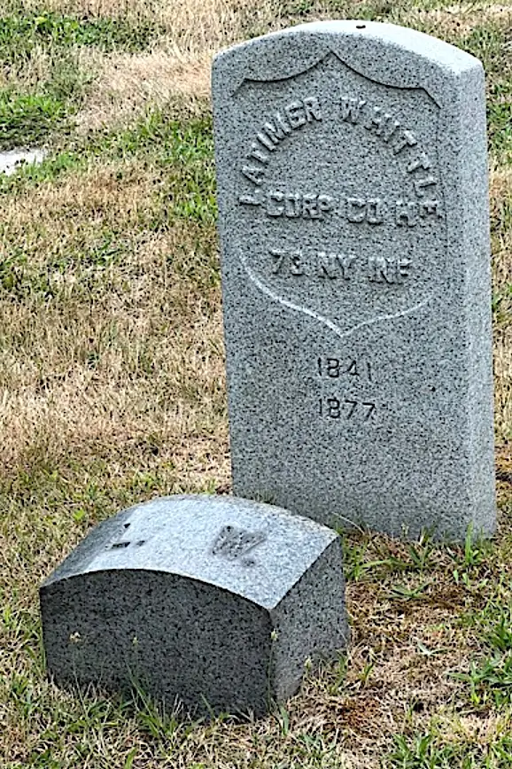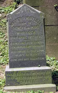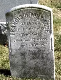WALTERS, FRANCIS B. B. (1834-1874). Private, 158th New York Infantry, Company F. A Brooklyn native, he enlisted there on September 6, 1862, mustered immediately into the 158th New York, and was discharged on June 3, 1865, at Washington, D.C. He last lived in Plainfield, New Jersey, where he succumbed to consumption. Section 71, lot 23.